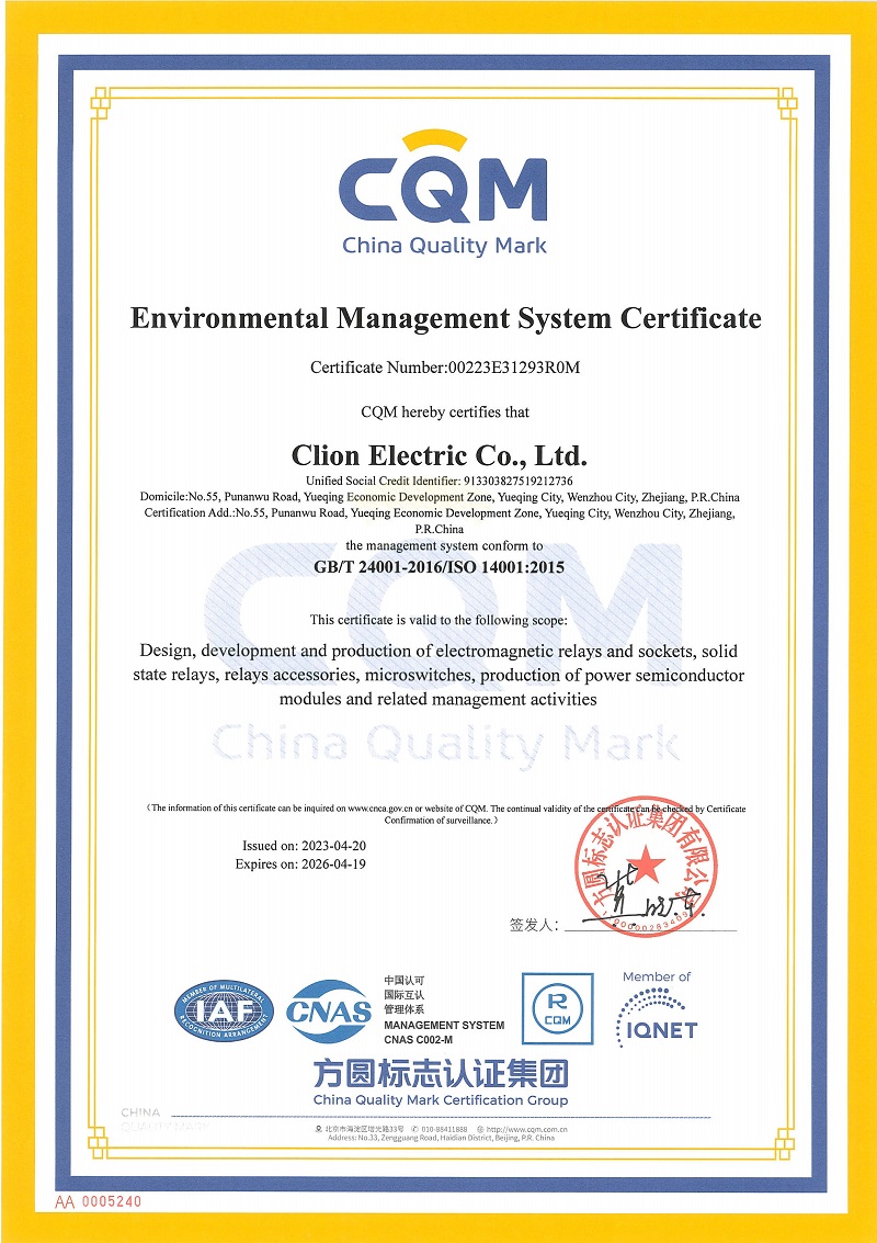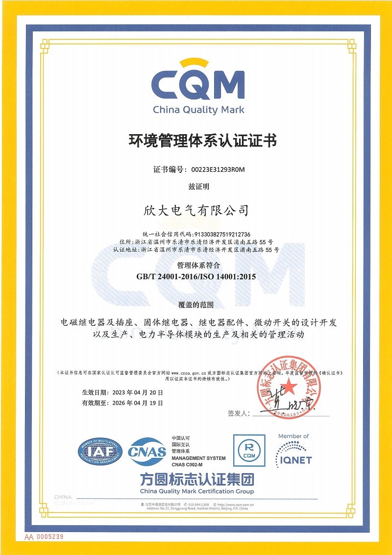 環(huan)境管理體系認證(zheng)證(zheng)書(英文)