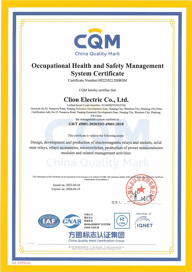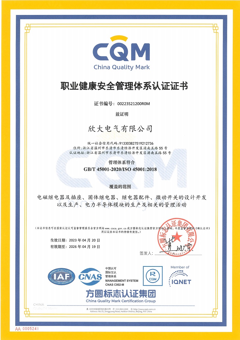 職(zhi)業健康安全管(guan)理體系認證證書(shu)(英文)