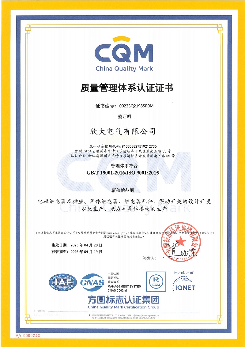 質量管理(li)體系(xi)認證(zheng)證(zheng)書(英文)