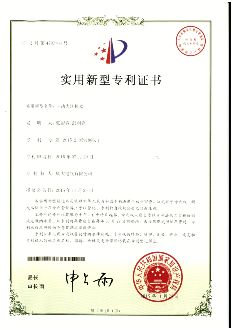 [專利證書]抗(kang)震電(dian)磁繼電(dian)器(實用(yong))