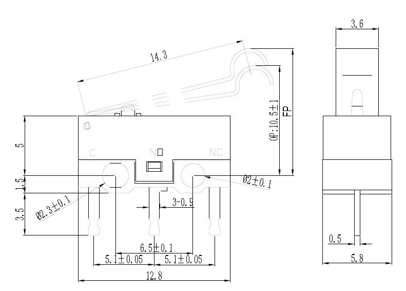 開關安裝時使用M2螺釘,使用平墊圈,彈性墊圈來緊固。此時