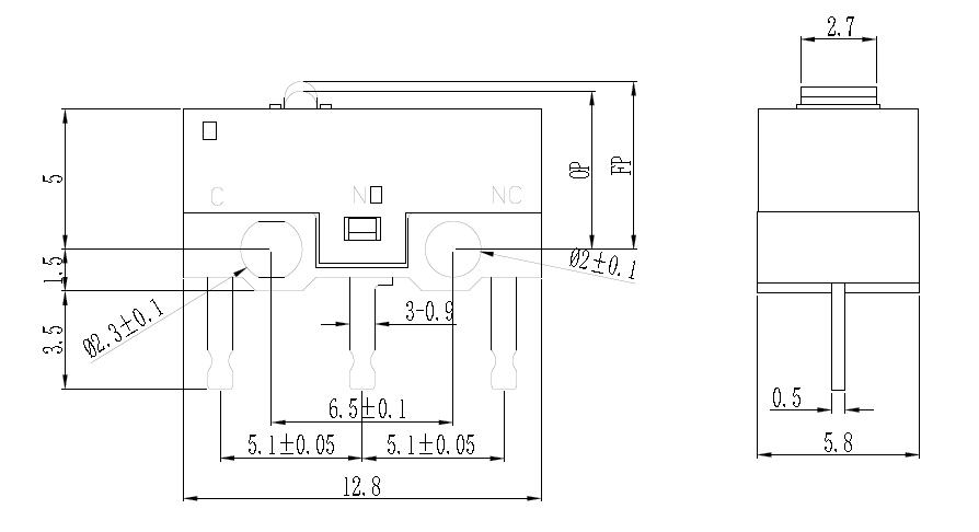 開關安裝時使用M2螺釘,使用平墊圈,彈性墊圈來緊固。此時