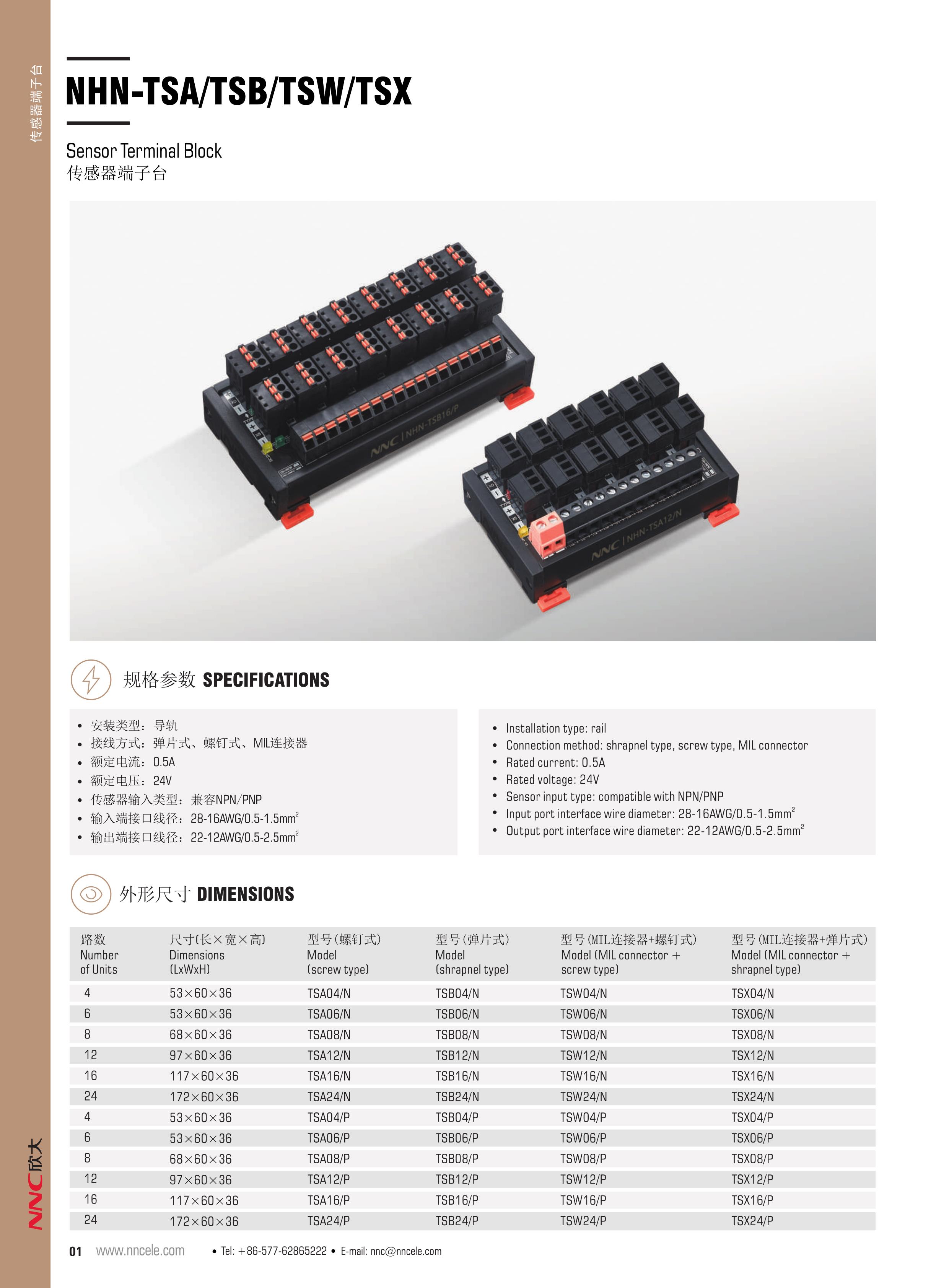 NHN-TSA/TSB/TSW/TSX 傳感器端子臺