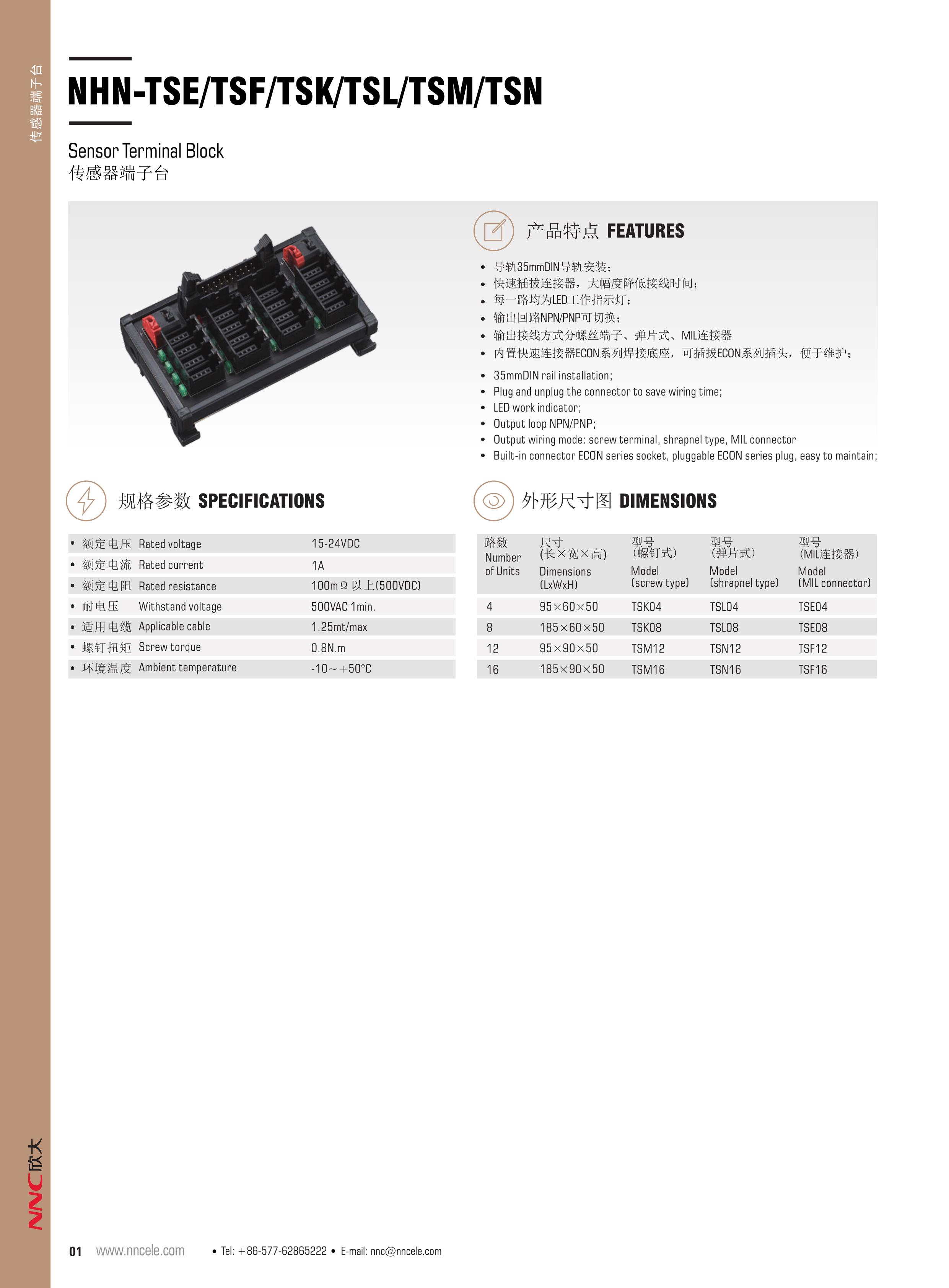 NHN-TSE/TSF/TSK/TSL/TSM/TSN 傳感器端子臺