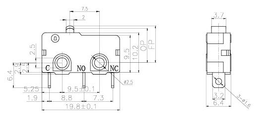 開關安裝時使用M2.3-M2.5螺釘,使用平墊圈,彈性墊圈來緊固。此時