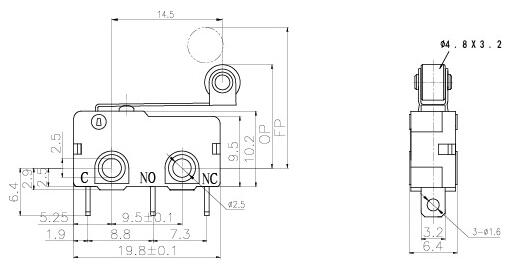 根據EN61058-1 ,該開關的最小絕緣層厚度應該為1.1mm,端子和安裝板之間的最小空間距離應該為1.6mm。