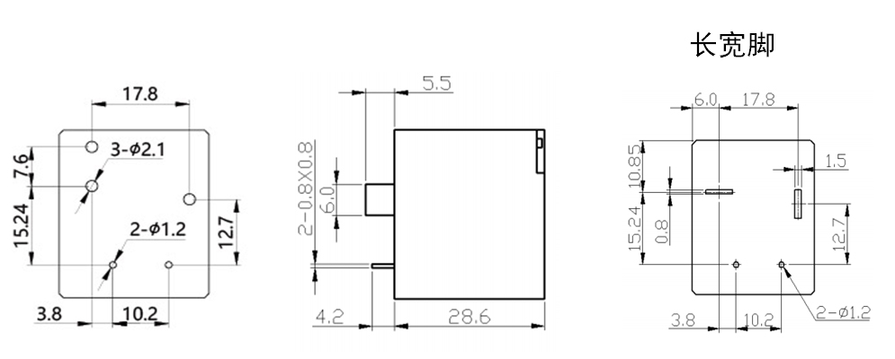 外形尺寸、安裝孔與線路圖(單位:mm)