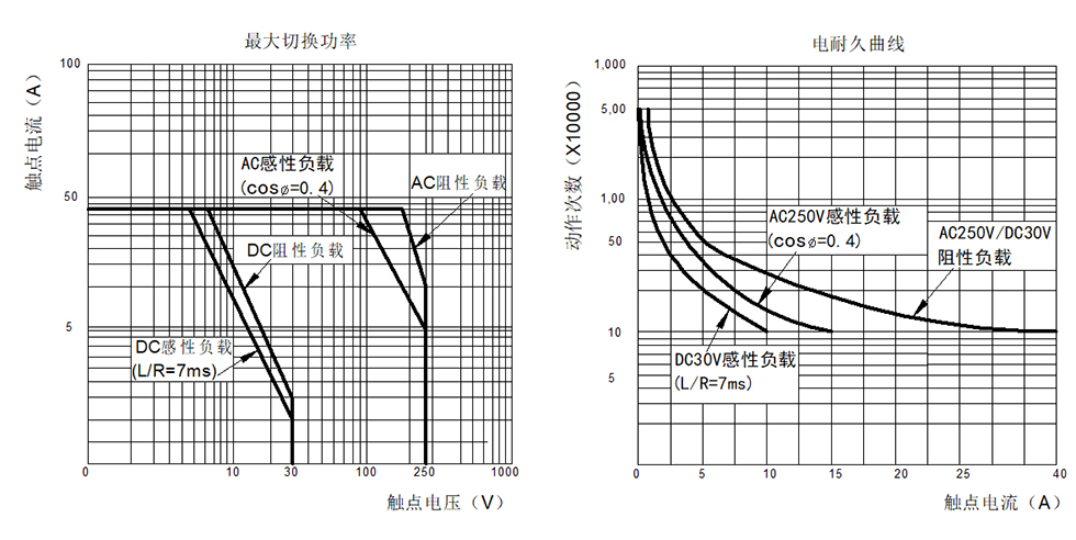 在沒有明確說明的情況下,所有欣大繼電器殼體上標識的負載電流均為阻性負載。在額定切換電壓下,電感負載的允許電流不應超過額定阻性負載的30%,電動機負載的允許電流不應超過額定阻性負載的20%,燈性負載的允許電流不應超過額定阻性負載的10%,容性負載的允許電流不應超過額定阻性負載的5%。為了產品實際使用的可靠性,在選型時建議選擇觸點負載電流值不超過產品額定負載下穩態電流值的60%~70%。