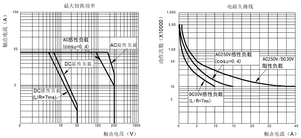 在沒有明確說明的情況下,所有欣大繼電器殼體上標識的負載電流均為阻性負載。在額定切換電壓下,電感負載的允許電流不應超過額定阻性負載的30%,電動機負載的允許電流不應超過額定阻性負載的20%,燈性負載的允許電流不應超過額定阻性負載的10%,容性負載的允許電流不應超過額定阻性負載的5%。為了產品實際使用的可靠性,在選型時建議選擇觸點負載電流值不超過產品額定負載下穩態電流值的60%~70%。