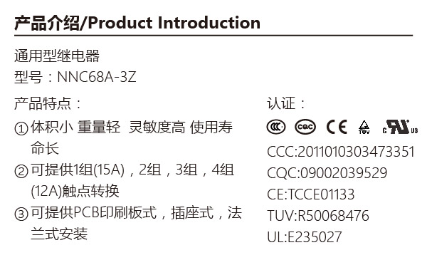 - 欣大電氣NNC68A(JQX-13F-3Z, LY3)系列通用電磁繼電器采用無塵車間加工技術及自動化生產線,選材精良,優質銀合金觸點,上等銅材,符合ROHS標準的元器件及原材料,國際標準尺寸及安裝方式,具有高容量,靈敏度強,耐久性好,內部防塵,壽命長等優點,廣泛應用于家用電器,PCB線路板,工業控制系統,自動化控制系統等領域。