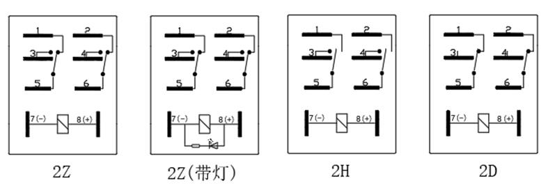 ⑤ 觸點形式:2H= 2組常開型 H; 2D= 2組常閉型 D;2Z= 2組轉換型 Z