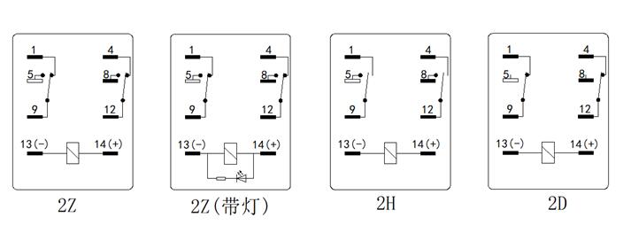 ⑤ 觸點形式:2H= 2組常開型 H;2D= 2組常閉 D; 2Z= 2組轉換型 Z