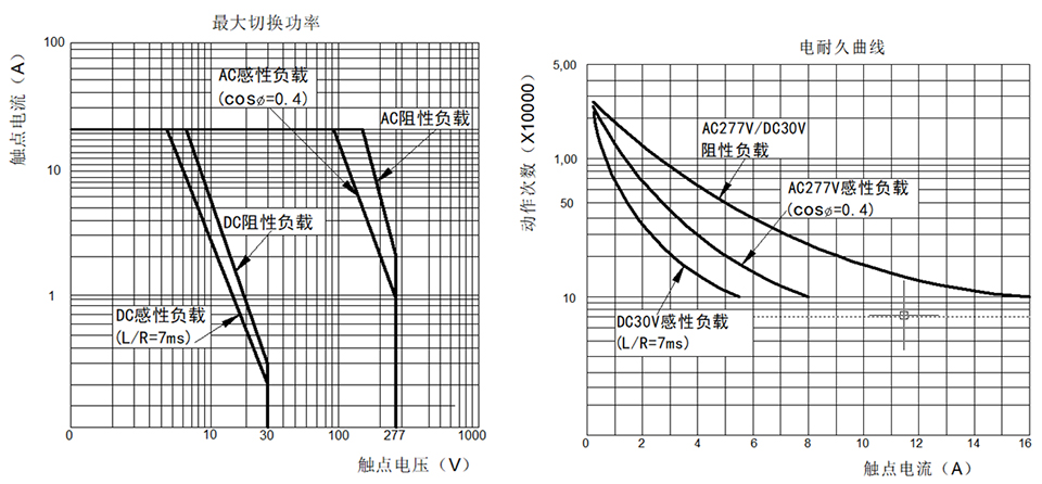 在沒有明確說明的情況下,所有欣大繼電器殼體上標識的負載電流均為阻性負載。在額定切換電壓下,電感負載的允許電流不應超過額定阻性負載的30%,電動機負載的允許電流不應超過額定阻性負載的20%,燈性負載的允許電流不應超過額定阻性負載的10%,容性負載的允許電流不應超過額定阻性負載的5%。為了產品實際使用的可靠性,在選型時建議選擇觸點負載電流值不超過產品額定負載下穩態電流值的60%~70%。