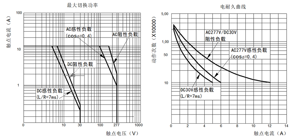 在沒有明確說明的情況下,所有欣大繼電器殼體上標識的負載電流均為阻性負載。在額定切換電壓下,電感負載的允許電流不應超過額定阻性負載的30%,電動機負載的允許電流不應超過額定阻性負載的20%,燈性負載的允許電流不應超過額定阻性負載的10%,容性負載的允許電流不應超過額定阻性負載的5%。為了產品實際使用的可靠性,在選型時建議選擇觸點負載電流值不超過產品額定負載下穩態電流值的60%~70%。