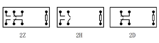 ② 觸點形式:2H=2組常開型;2D=2組常閉;2Z=2組轉換型