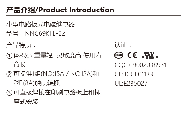 - 欣大電氣NNC69KTL 2Z 8A系列小型線路板式電磁繼電器結合無塵車間加工技術及全自動化生產線,選用優質銀合金觸點,上等銅材,符合ROHS標準的元器件及原材料,國際標準尺寸及安裝方式,具有高容量,靈敏度強,耐久性好,內部防塵,壽命長等優點,廣泛應用于家用電器,PCB線路板,工業控制系統,自動化控制系統等領域。