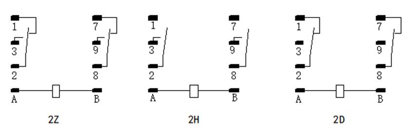 ③ 觸點形式:2H= 2組常開型;2D= 2組常閉型;2Z= 2組轉換型