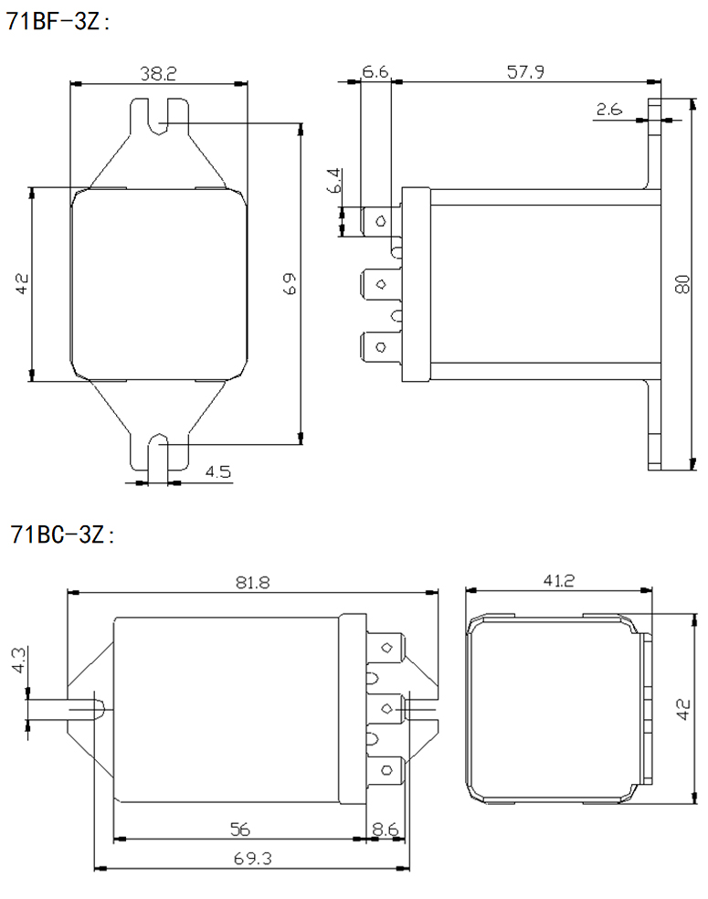 外形尺寸、安裝孔與線路圖(單位:mm)