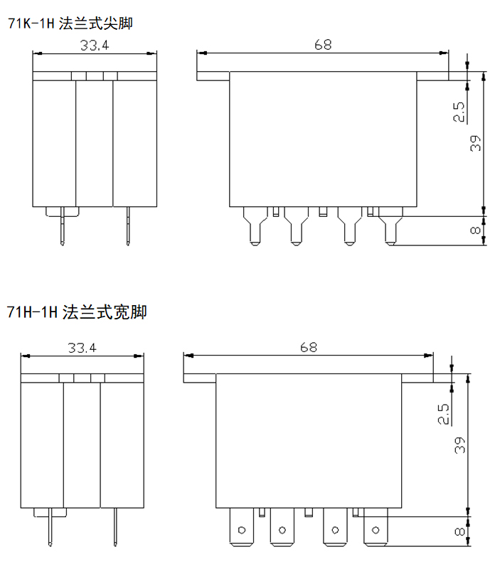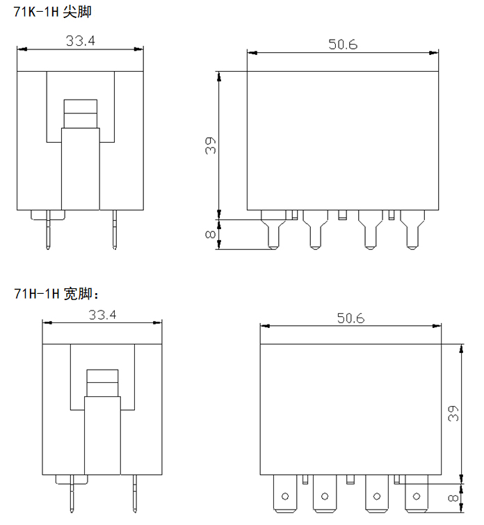 ③ 標準(zhun)插(cha)座式引出腳、PCB引出腳