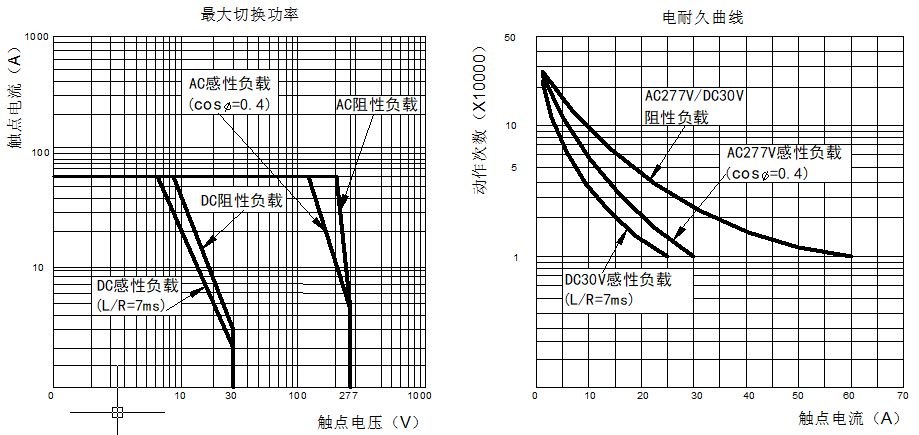 在沒有明確說明的情況下,所有欣大繼電器殼體上標識的負載電流均為阻性負載。在額定切換電壓下,電感負載的允許電流不應超過額定阻性負載的30%,電動機負載的允許電流不應超過額定阻性負載的20%,燈性負載的允許電流不應超過額定阻性負載的10%,容性負載的允許電流不應超過額定阻性負載的5%。為了產品實際使用的可靠性,在選型時建議選擇觸點負載電流值不超過產品額定負載下穩態電流值的60%~70%。