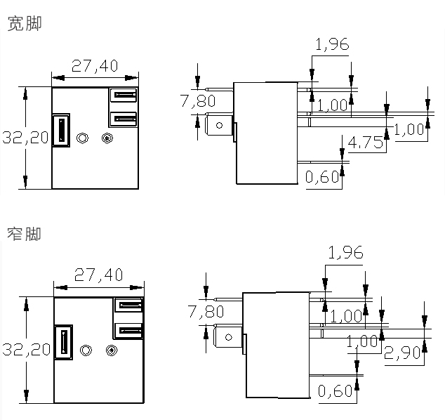 外形尺寸、安裝孔與線路圖(單位:mm)
