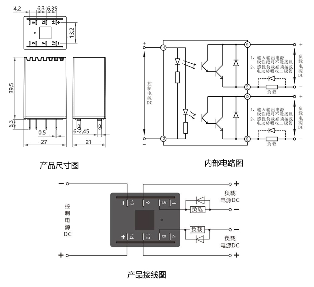 產品技術參數控制電壓 3-32VDC 控制電流 5-25mA 接通電壓 3VDC 關斷電壓 1VDC 反向電壓 32VDC 負載電壓 12-200VDC 負載電流 1A、2A、3A、4A、5A(每路)
