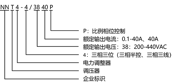 ?適用負載:三相三線半控型:定阻抗負載,遠紅外、IR 燈管、硅碳棒負載等不適型號說明
