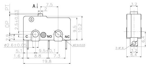 根據EN61058-1 ,該開關的最小絕緣層厚度應該為1.1mm,端子和安裝板之間的最小空間距離應該為1.6mm。