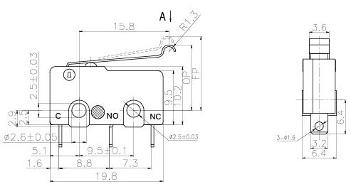 根據EN61058-1 ,該開關的最小絕緣層厚度應該為1.1mm,端子和安裝板之間的最小空間距離應該為1.6mm。