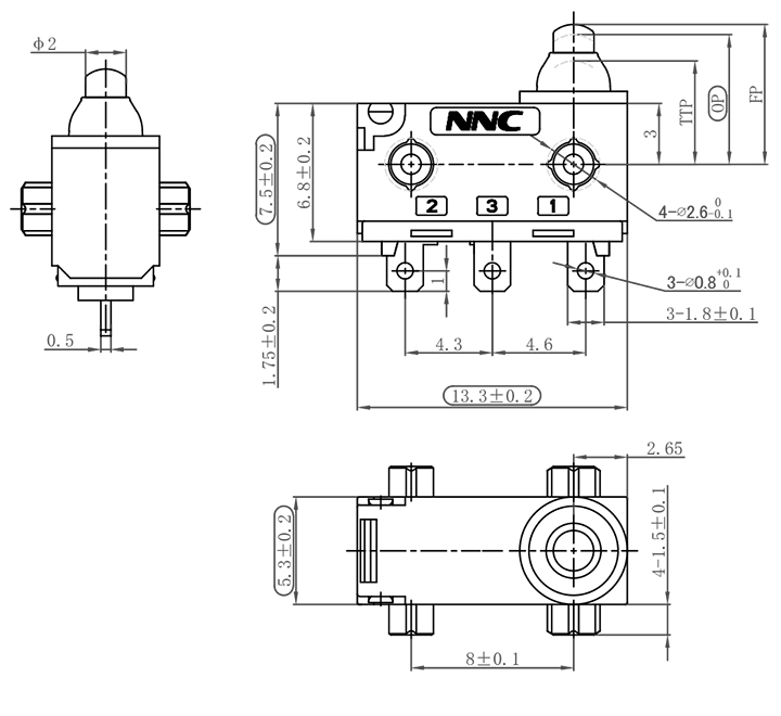 項目 OF 動作力 ≤130gf RF 釋放力 ≥13gf FP 自由位置 ≤7.2mm OP 動作位置 6.5±0.2mm TTP 極限位置 ≥5.1mm