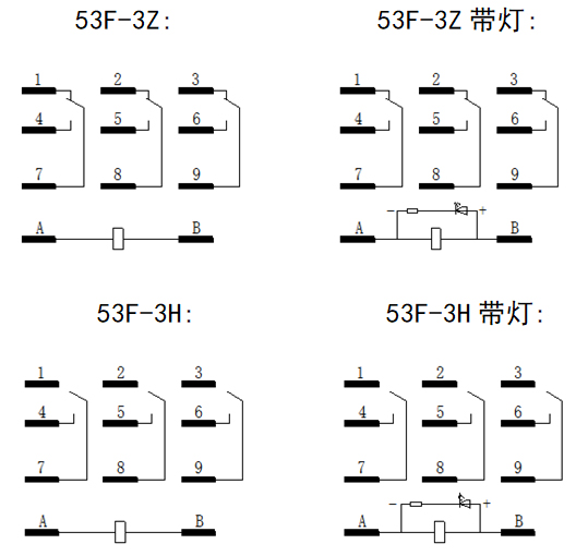 ② 觸點形式:3H= 3組常開型;3D= 3組常閉型;3Z=3組轉換型