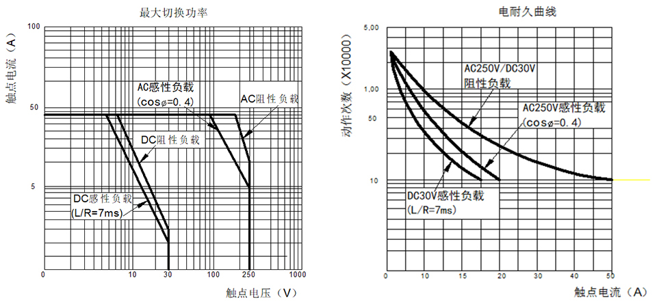 在沒有明確說明的情況下,所有欣大繼電器殼體上標識的負載電流均為阻性負載。在額定切換電壓下,電感負載的允許電流不應超過額定阻性負載的30%,電動機負載的允許電流不應超過額定阻性負載的20%,燈性負載的允許電流不應超過額定阻性負載的10%,容性負載的允許電流不應超過額定阻性負載的5%。為了產品實際使用的可靠性,在選型時建議選擇觸點負載電流值不超過產品額定負載下穩態電流值的60%~70%。
