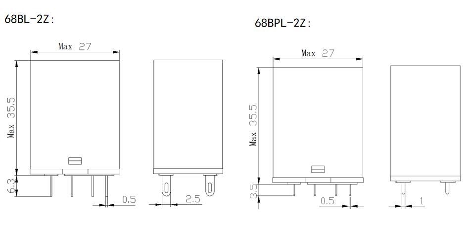 動作時間(額定電壓下) ≤20ms 釋放時間(額定電壓下) ≤20ms 絕緣電阻 1000MΩ ( 500VDC) 介質耐壓(漏電流1mA ) 線圈與觸點間 1500VAC(1分鐘)漏電流1mA. 斷開觸點間 1000VAC(1分鐘)漏電流1mA. 異極觸點間 1000VAC(1分鐘)漏電流1mA. 振動特性 誤動作 振幅 1mm,10~55Hz 振動耐久性 振幅 1mm,10~55Hz 沖擊特性 誤動作 最高加速度98m/s2持續時間11ms 耐沖擊 最高加速度980m/s2持續時間6ms 環境溫度 -40℃~85℃ 相對濕度 5%~ 85% RH 端子結構 PCB焊接式端子