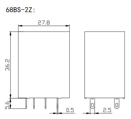 動作時間(額定電壓下) ≤20ms 釋放時間(額定電壓下) ≤20ms 絕緣電阻 1000MΩ ( 500VDC) 介質耐壓(漏電流1mA ) 線圈與觸點間 1500VAC(1分鐘)漏電流1mA. 斷開觸點間 1000VAC(1分鐘)漏電流1mA. 異極觸點間 1000VAC(1分鐘)漏電流1mA. 振動特性 誤動作 振幅 1mm,10~55Hz 振動耐久性 振幅 1mm,10~55Hz 沖擊特性 誤動作 最高加速度98m/s2持續時間11ms 耐沖擊 最高加速度980m/s2持續時間6ms 環境溫度 -40℃~85℃ 相對濕度 5%~ 85% RH 端子結構 PCB焊接式端子