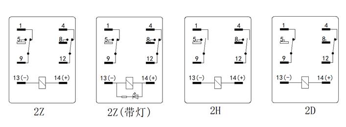⑤ 觸點形式:2H= 2組常開型 H;2D= 2組常閉 D; 2Z= 2組轉換型 Z