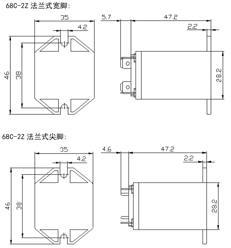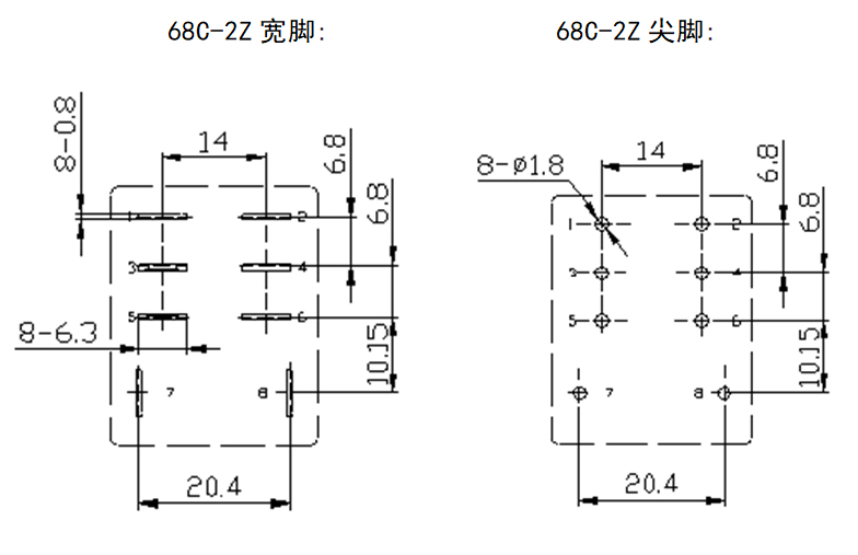 ● 標準插座式引出腳、PCB引出腳