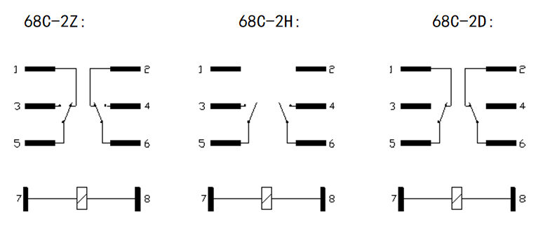 ② 觸點形式:2H= 2組常開型;2D= 2組常閉型;2Z=2組轉換型