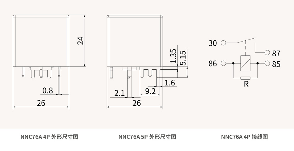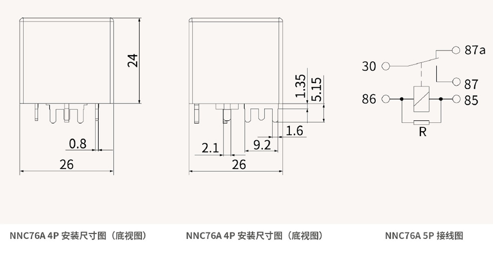 外形尺寸(26X26x24) mm產品型號說明