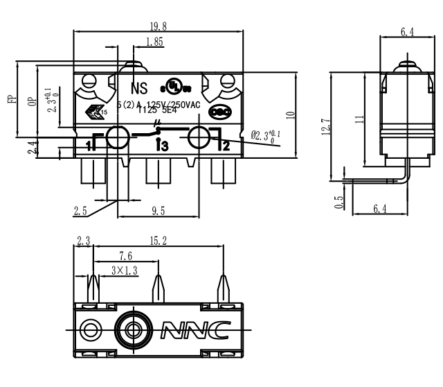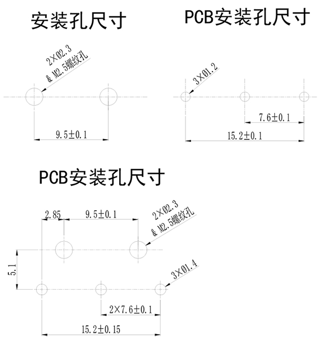 ⑧ 安裝(zhuang)孔:5: ?2.5 ; 3: ?2.3
