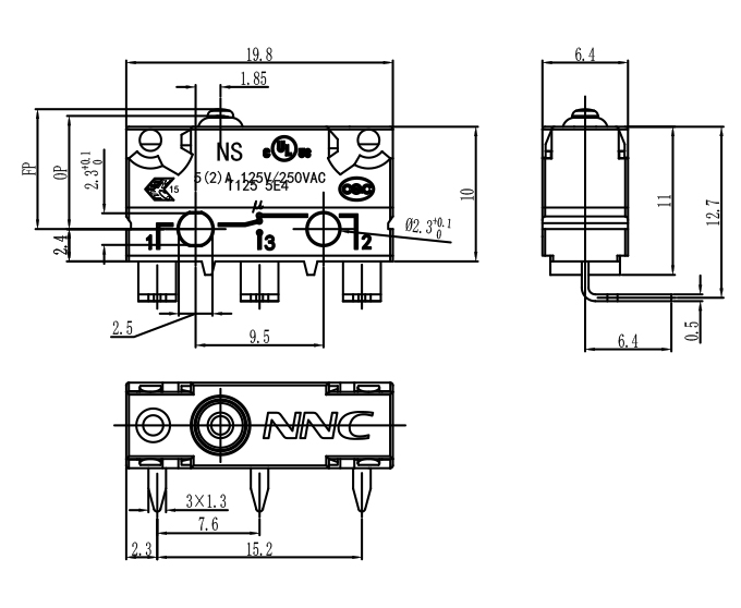 ⑧ 安裝孔:5: ?2.5 ; 3: ?2.3