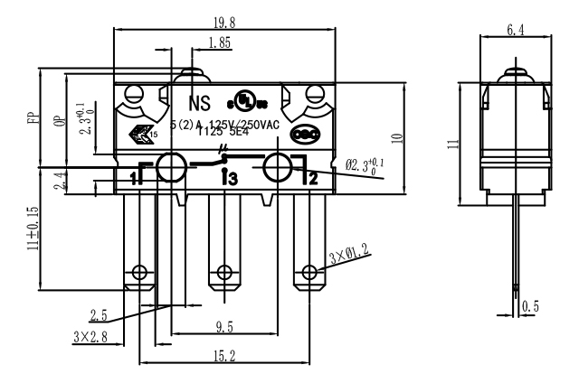 ⑧ 安裝孔:5: ?2.5 ; 3: ?2.3